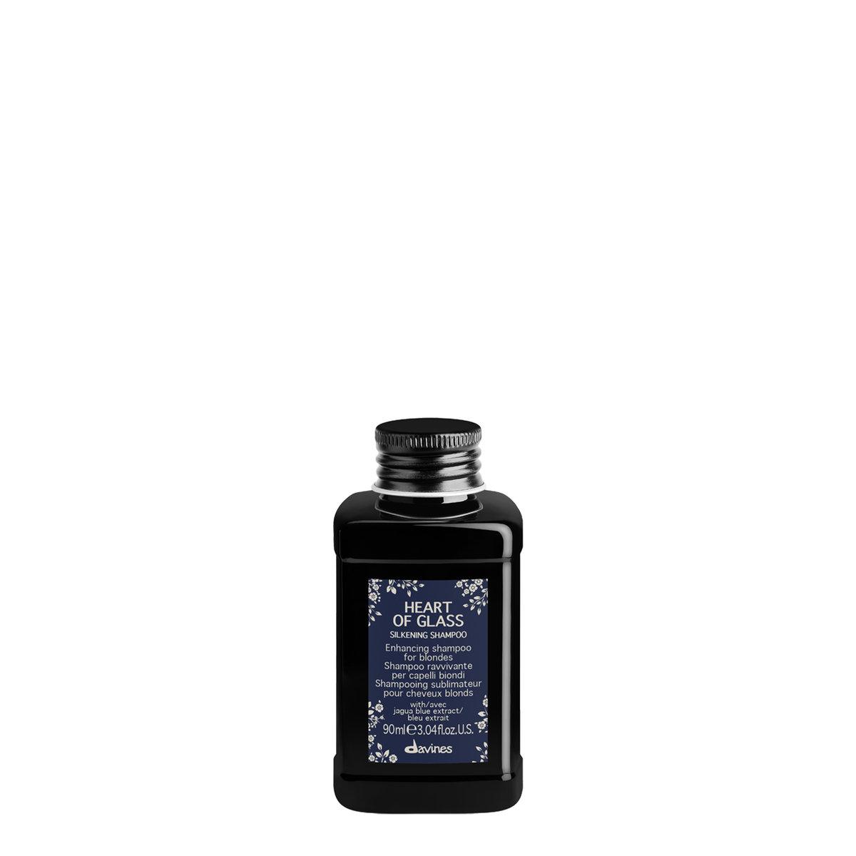 Davines Heart of Glass Shampoo kirkastaa, kosteuttaa ja paikkaa vaaleita hiuksia. Se ehkäisee vaaleiden hiusten kellastumista ja kuivumista. Luonnollista siniviolettia kasvipigmenttiä sisältävä kirkastava shampoo ei varsinaisesti värjää hiuksia kylmemmän sävyiseksi kuten perinteinen hopeashampoo, vaan ylläpitää vaalean sävyn kirkkautta sekä hiusten pehmeyttä.