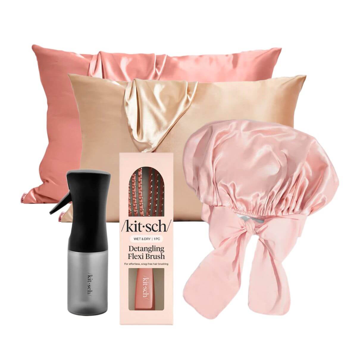 Kitsch Yö & Aamu -kiharasetti (satiinityynyliinat, bonnetti, harja + suihkepullo kaupan päälle!)