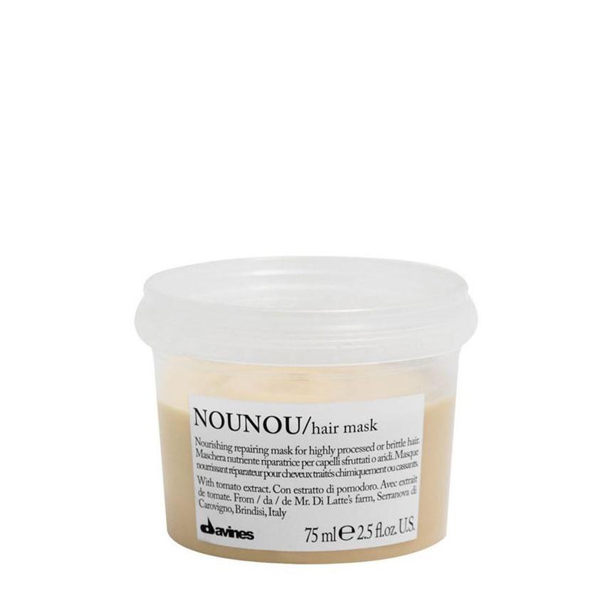 Davines NouNou Mask on hiusnaamio, joka ravitsee, korjaa ja pehmentää vaalennettuja, raidoitettuja ja käsiteltyjä hiuksia. Hiuksista tulee pehmeät, helposti käsiteltävät ja sileämmän tuntuiset. Vaurioituneiden hiusten tehohoito helpottaa hiusten selvittämistä ja palauttaa hiuksiin luonnollista taipuisuutta ja joustavuutta.